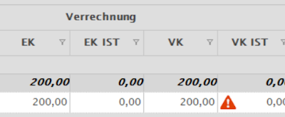 Bei Differenzen zwischen geplanten Verkaufspreis und gebuchten Verklaufpreis wird eine Warnung angezeigt, wenn es zumindest eine Rechnung für diesen Auftrag gibt